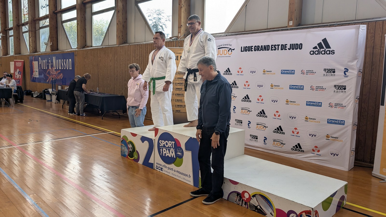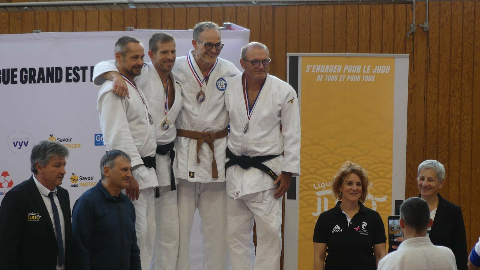 Dimanche 12, les vétérans de Metz Judo et leurs nombreux supporters avaient fait le déplacement à Pont-à-Mousson pour les 1ères Coupes Vétérans organisée par la Ligue Grand Est de Judo. Les vétérans sont des judokas de plus de 30 ans, qui combattent non seulement par catégorie de poids, mais également par catégorie d'âge par tranche de 5 ans. De plus, pour ces coupes, les ceintures de couleur (orange à bleue) étaient séparées des ceintures marron et noires.