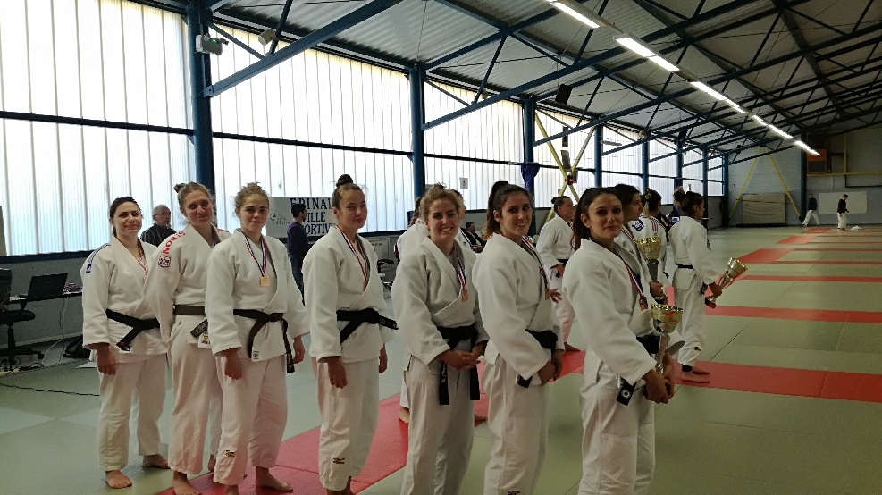L'équipe de Metz Judo : Ophélie Metryka, Justine Lambert, Marie Clus, Lucille Challois, Emma Vinot, Sophie Caci, Marina Melkhilef