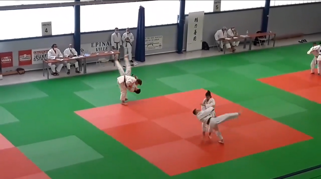 Oscar Louis et Eyal Poupin valident leur kata. Hélène Egloff et Abdou Iniev sont recalés.
