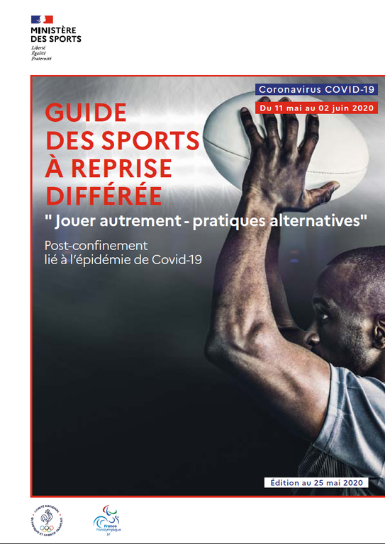 Le Ministère des Sports a publié aujourd'hui un "Guide des sports à reprise différée" (voir en bas de page) qui donne les règles pour les sports dont la pratique normale n'est pas possible comme les sports collectifs, les sports de contact ou les sports de combat. Notons déjà le fait que ce guide, daté du 25 mai, couvre la période allant du 11 mai au 2 juin. Espérons que sa mise à jour pour la période après le 2 juin arrive un peu plus rapidement.